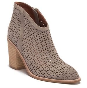 Jeffrey Campbell "Medera" suede ankle booties. side zip. laser cut. almond toe. block heel. excellent condition. size 6 . Questions? Leave a comment below!