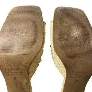 Jeffrey Campbell Melange Raffia Crosswoven Chunky Heels Tan Sz 9 Square Toe Revo
