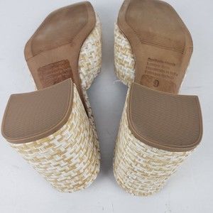 Jeffrey Campbell Melange-3 White Tan Raffia Squared Toe Woven Slip On Sandal Size 9