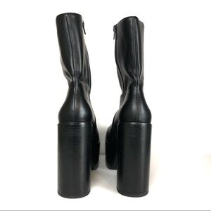 Description: Walk to new heights in this round toe platform ankle boot with a chunky/ block heel.