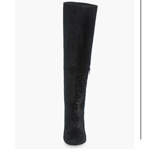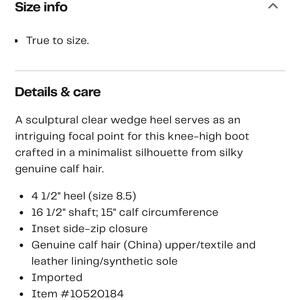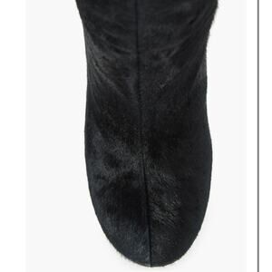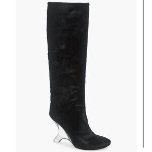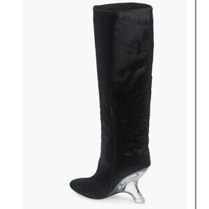 🍓 Jeffrey Campbell Modified Black Genuine Silky Calf Hair Knee-High Boot Size 8.5 Sculptural Wedge Clear Heel New.