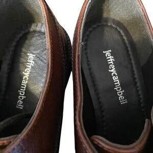 Jeffrey Campbell Moyra Brown Leather Oxford Shoes Tie size 7.5 in like new condition except for defect in leather see mark on inside toe of right shoe. No box. Heel height 1 1/4 inches
