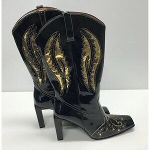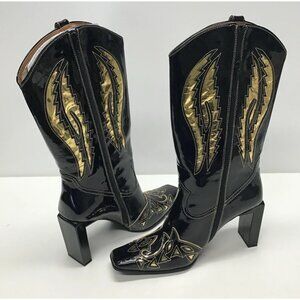 Jeffrey Campbell NIB Western Cowboy Boots Stirrups Women’s Sz 11 Black Gold NEW