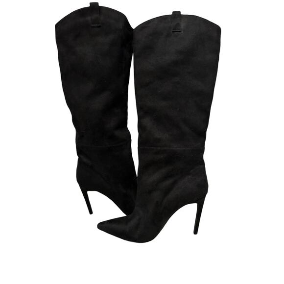 Jeffrey Campbell NWOT Knee High Stiletto Boots Sz 8.5 Black Suede Wide Calf High Heel
