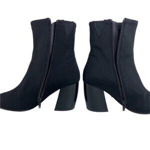 Jeffrey Campbell Neoprene Sock Black Heels Curved Stacked Block Heel Pointed. Size 5.5. Style sport. Side zipper. Excellent used condition. 8.5” tall and 2 3/4” heel.