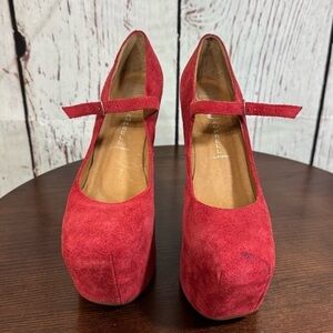 Jeffrey Campbell Night Envi Studded Platform Mary Janes Women’s 6.5 Suede Red