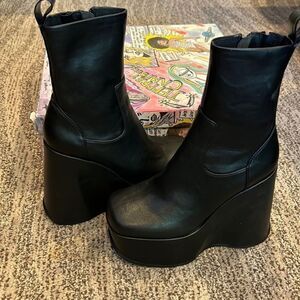 Jeffrey Campbell Nightshade Big Block Boot Platform Wedge US 6/6.5 Black