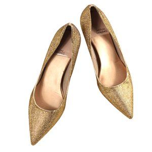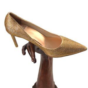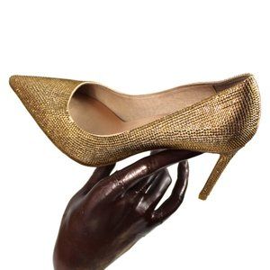 Jeffrey Campbell Nikia Gold Rhinestone Crystal Pointed Toe Stiletto Heel…