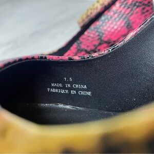 >color: fuchsia orange snake combo, snake skin print leather