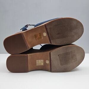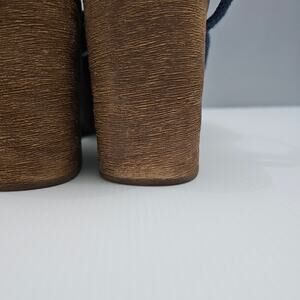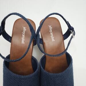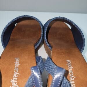 Jeffrey Campbell On Deck Sandal Womens 10 Navy Blue Wood Wedge Platform Heel