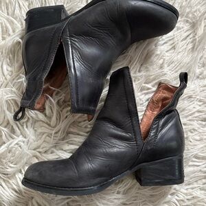 Jeffrey Campbell Oriley Cut Out Black Leather Pull Tabs Ankle Booties Size 6
