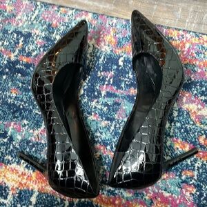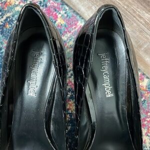 Jeffrey Campbell Pelara Black Patent Pointed Toe Pump Croco