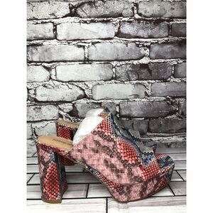 Selling Jeffrey Campbell Pilar-2 Pink Red Platform Python Leather Sandals Women Sz 8.5M US/39EU