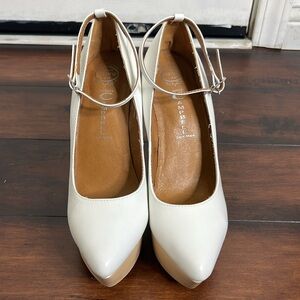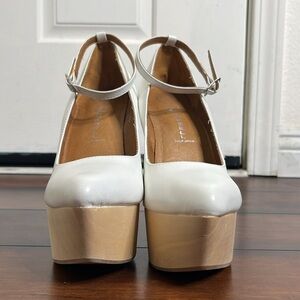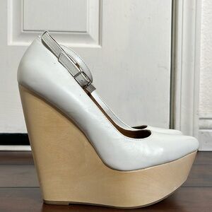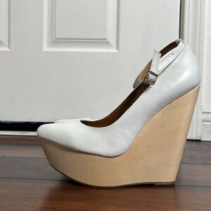Jeffrey Campbell Pizan Wedges Leather Wood Platform Ankle Strap Women's 8.5