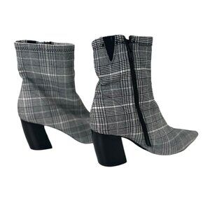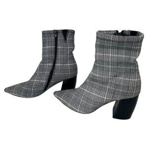 Jeffrey Campbell Plaid Houndstooth Ankle Bootie Pointed Toe Block Heel size 8.5