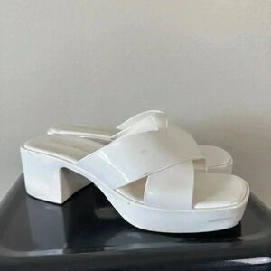 Jeffrey Campbell Platform Bubblegum Mule Sandals Cream Shiny Size 8