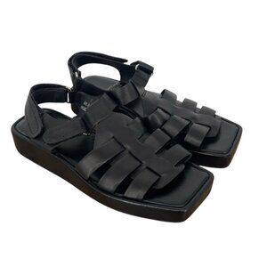 Jeffrey Campbell Poisson Fisherman Sandals Black Leather Size 7