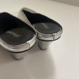 Jeffrey Campbell Polite Pointed Toe Mules Block Heel Silver Metallic Size 7