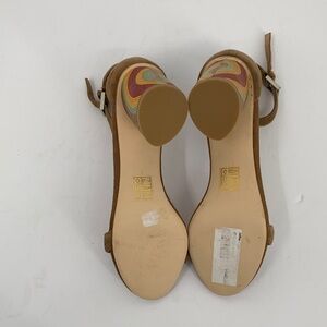 Jeffrey Campbell Purdy sandals mosaic rainbow chunky heel suede tan brown 7