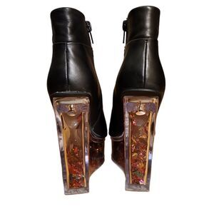 Jeffrey Campbell Black Leather Icy Confetti Wedge Platform Ankle Boots Size 6 M