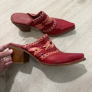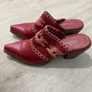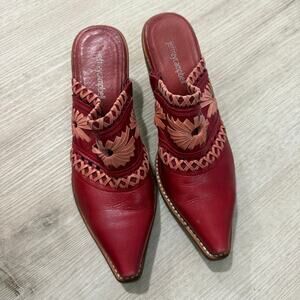 Jeffrey Campbell Red Leather Woven Mule Embroidered Western Boho Pointed Toe
