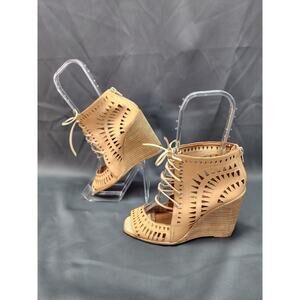 Jeffrey Campbell Rodillo Cutout Hi Wedge Peep Sandals Nude Size 8 Boho