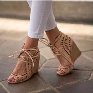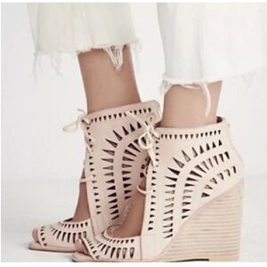Jeffrey Campbell Rodillo Cutout Hi Wedge Peep Sandals Nude Size 9