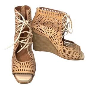 #JeffreyCampbell #Rodillo #WedgeSandals #PeepToe #CutoutDesign #NudeHeels #BohoChic #StylishFootwear #TrendySandals #Size10