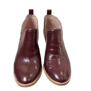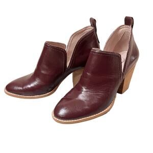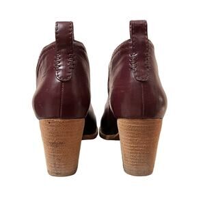 Jeffrey Campbell Rosalee Bootie Stacked Heel Ankle Boots Leather Maroon. Features deep notches at the sides. I am not the original owner and couldn't find the color name; it looks like they may have been DIY'd maroon.