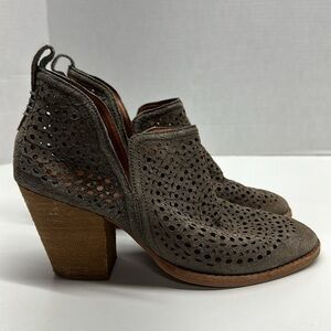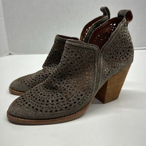 Jeffrey Campbell Rosalee Laser Cut Heeled Ankle Boots Booties Suede Brown Size 8