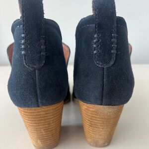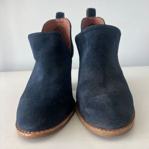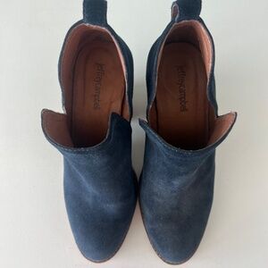 Jeffrey Campbell Rosalee Women's Blue Suede Block Heel Ankle Bootie 8/US. Booties are in good, preowned condition with signs of wear.