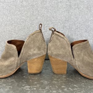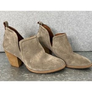 Jeffrey Campbell Rosee Heeled Ankle Booties Size 9 Tan Taupe Suede Slip On
