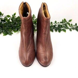 Jeffrey Campbell Rumble Bootie. Size 8. Brown leather with stacked wood heel. 4" tall. Back zip