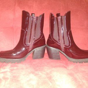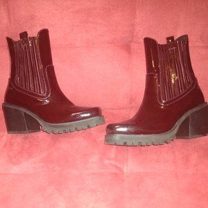 Jeffrey Campbell Sabine Chelsea Moto Boots, size 8. Burgundy, patent leather. Worn one time, no flaws.