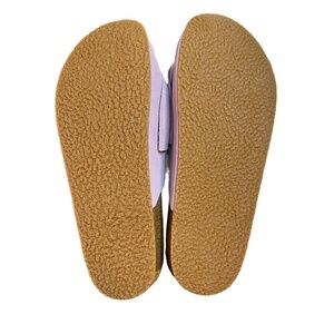 Features: Pink, Bow detail, Slip-on, Cork soles, Suede upper, Twisted knot, Textured rubber soles