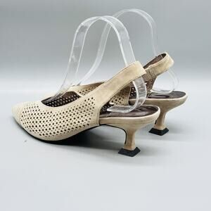 Jeffrey Campbell Shoes Womens 8.5 Beige Suede Slingback Perforated Kitten Heels