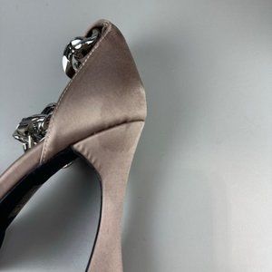 Jeffrey Campbell Silverlake Platform Heel in Taupe Satin Silver