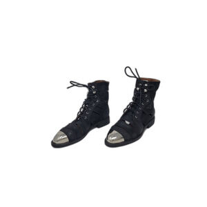 Jeffrey Campbell Slashd Cap Black Chrome Sandal Boots. Size 6.5. Step into bold fashion territory with the Jeffrey Campbell Slashd Cap Black Chrome Sandal Boots. These sandal boots redefine edgy style with their striking black chrome finish and unique design. The slashd cap detailing adds an avant-garde touch, making these boots a statement piece for the fashion-forward individual. Crafted with Jeffrey Campbell's renowned attention to detail, these sandals effortlessly blend the toughness of boots with the breeziness of sandals, offering a distinctive look for any occasion. Whether you're stepping out for a night on the town or adding an edge to your everyday style, the Slashd Cap Sandal Boots are the epitome of modern, daring fashion. Embrace the unexpected with Jeffrey Campbell and make your mark with these black chrome stunners.