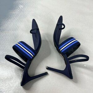 Jeffrey Campbell Striped Goalie Toe Strap Pointy Toe High Heel Sandals