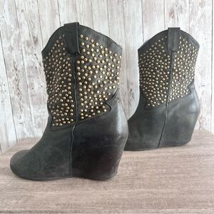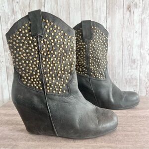 Jeffrey Campbell Studded Western Leather Wedge Boots Size 8.5