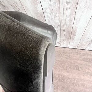 A mix of Western with the stitching and modern with the gold studs on these boots. Wedge style for comfort and dancing. These are a dark grey leather. There is wear on the heels and I have photos to show that. The main boot is in really great condition. Size 8.5.