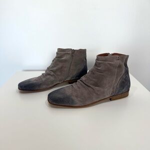 Stylish gray women’s suede boots with a sleek design. Perfect for versatile wear.