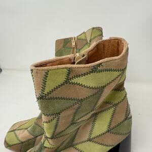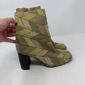 Jeffrey Campbell Suede Geometric Patchwork Ankle Boots Block Heel Size 9