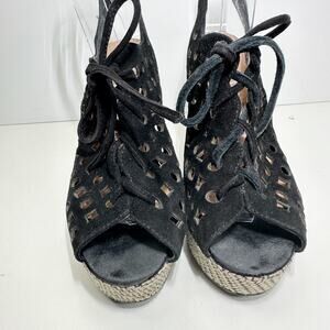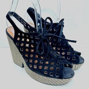 Jeffrey Campbell Suede Lace Up Platform Heel Peep Toe Sandal Black Women 8.5