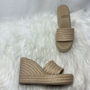 Jeffrey Campbell Sunlit Natural Raffia Platform Wedge Sandals Sz EU 40/US 9.5