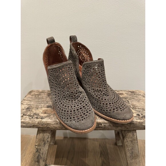 Jeffrey Campbell Taggart Perforated Suede Cutout Booties Taupe Grey 8.5 EUC