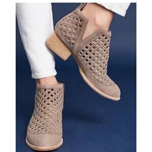 Jeffrey Campbell Taggart Suede Cutout Booties Pointed Western Taupe sz 7.5