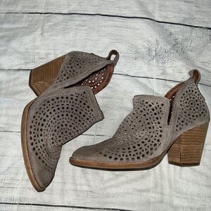 Good, preloved condition. Jeffrey Campbell Taggart Suede Cutout Taupe Cut Out Pointed Western Booties. 1.5 “ heel. Perforated. Leather upper, leather lining, synthetic sole.