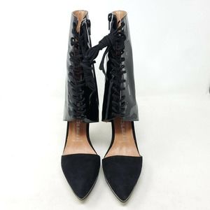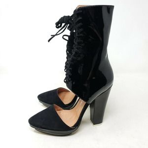 Jeffrey Campbell Talulah Heels Black Patent Leather Suede Platform Tie Boots 5.5
