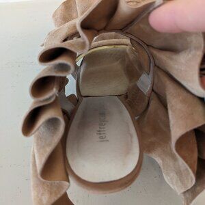 Jeffrey Campbell Tan Gathered Suede Platform Stiletto Slides Sandals, Sz. 6.5